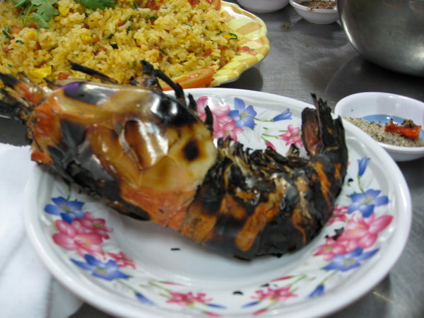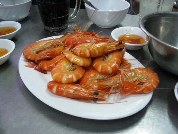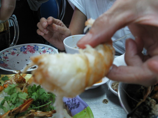 越南大頭蝦,媽呀!!有夠大!!不過剝殼後只剩三分之一,真是名副其實的大"頭"蝦XD