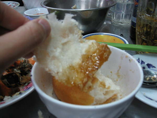 法國麵包,搭配酸子炒蟹吃,一人一條,吃撐了我XD