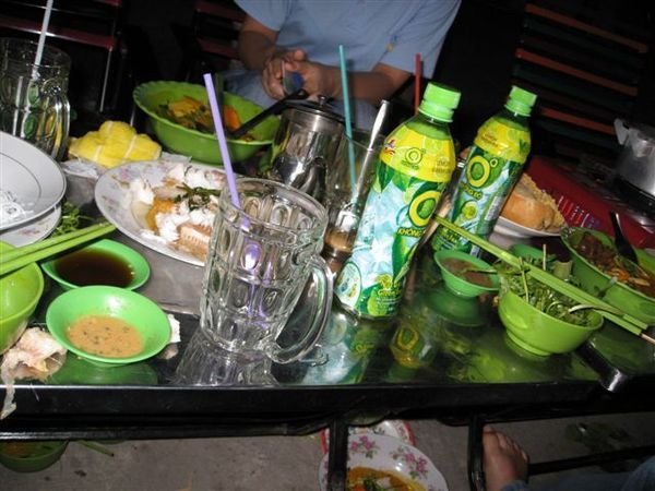 大伙杯盤狼藉的,吃吃喝喝,非常的熱鬧,不懂越文的我們,靠著會中文的越南同事翻譯