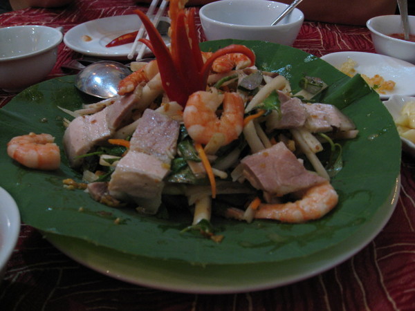 在炎熱的越南這種酸酸的涼拌菜,真的很開胃呢,這個可以單吃,也可以搭配蝦餅一起吃