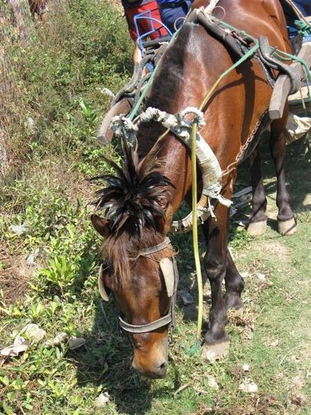 然後導遊就帶著我們走進蜿蜒的叢林小徑,還坐了有很瘦弱馬兒拉的馬車
