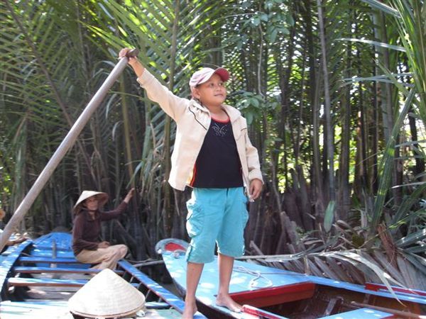 原來接下來是要坐人力船阿,人力船通常是兩個人一前一後在划,很多小朋友都在幫爸爸媽媽划船賺錢喔